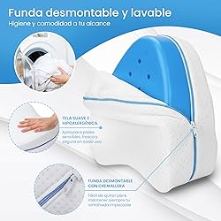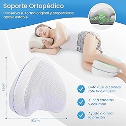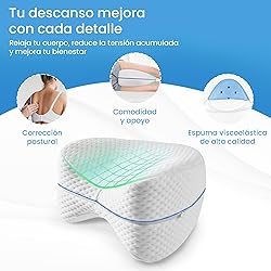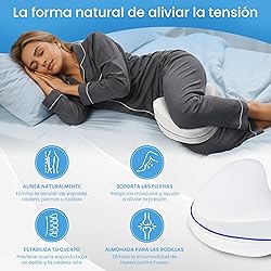 Descubre el máximo confort durante el sueño con esta almohada ergonómica para piernas y rodillas. Diseñada específicamente para dormir de lado, esta almohada de espuma viscoelástica de densidad media proporciona un soporte óptimo que ayuda a aliviar el dolor de espalda y lumbares. Con dimensiones de 25 x 22 x 13 centímetros y un peso de 220 gramos, se adapta perfectamente entre las piernas para mantener una alineación adecuada de la columna vertebral. La funda transpirable asegura una experiencia de descanso fresca y cómoda. Este cojín ergonómico previene la rotación externa de la cadera, contribuyendo a una postura más saludable durante el sueño. La espuma viscoelástica de alta calidad ofrece el equilibrio perfecto entre soporte y comodidad, mientras que su diseño sólido en color blanco combina con cualquier ropa de cama. La funda es fácil de mantener y se puede lavar a mano para garantizar su durabilidad. Ideal para quienes buscan mejorar su calidad de sueño y reducir las molestias causadas por una mala postura al dormir.