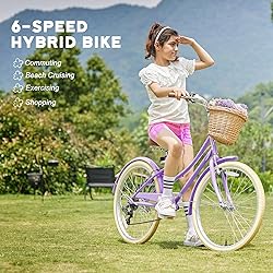 Glerc Missy 20 "24" 26 "Inch Girl Cruiser Shimano 6 Speed Hybrid City Bicycle, para Adolescentes Mayores de 6 años, con cestas de Mimbre, Ligero