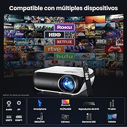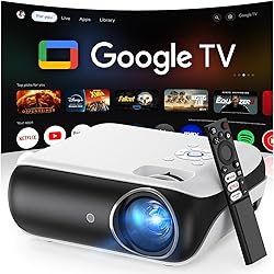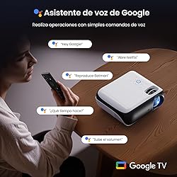 【Google TV Official】 Smart Mini Proyector 4K, HAPPRUN 1000 ANSI 1080P Full HD Proyector con Dolby Audio, WiFi6 Bluetooth5.2 Projector Cine en Casa, Control de Voz, con Netflix, Prime Video, Youtube