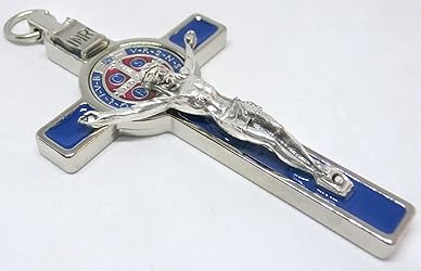 GTBITALY 10.001.11 MS Cruz de San Benito Deluxe tamaño 8 cm azul medalla inri esmaltado a mano plata exorcismo exorcista, Plata