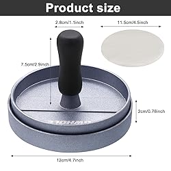 especificaciones - material: acero inoxidable -size: 5,9 pulgadas El paquete incluye: prensa de hamburguesa de acero inoxidable x 1, espátula de acero inoxidable x x 1, aderezo can x 1 Servicio comercial: No dude en ponerse en contacto con nosotros por mensaje si tiene alguna pregunta sobre nuestro producto. Siempre estamos preparados para ofrecerle productos y servicios de la mejor calidad.