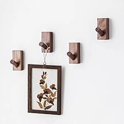 HomeDo Juego de 4 ganchos de pared autoadhesivos de madera, ganchos para ropa, percheros decorativos de madera, ganchos de madera,Estante para Sombreros (Rectángulo de Nogal-4P)