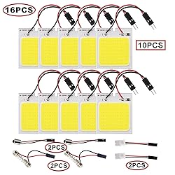 HUAZIZ 10 Piezas Luces LED de 300 lúmenes COB 48-SMD 12V DC para iluminación Interior del Coche, Panel de iluminación de cúpula, lámpara de Techo con Bombillas T10, BA9S, Adaptador Festoon