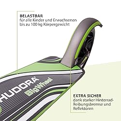 ¡Descubre nuestro Patinete Scooter - El patinete de patada definitivo para diversión sin igual! Con nuestro HUDORA BigWheel Scooter 205, experimentarás la comodidad y el rendimiento de un patinete premium. Este resistente y ligero patinete no solo es adecuado para niños, sino también para adultos y ofrece una variedad de características convincentes. El patinete de patada se distingue por ruedas de 205 mm, una plataforma de 88 cm de largo y guardabarros extra largos que garantizan una experiencia de conducción limpia. Pero eso no es todo: todas las piezas de desgaste, como el freno y la chapa de freno, son reemplazables, para que puedas mantener tu patinete en perfecto estado en todo momento. Con su manillar ajustable en altura, el patinete se adapta fácilmente a tus necesidades, y gracias a su peso ligero de solo 4 kg y la práctica correa de transporte, puedes llevarlo contigo a cualquier lugar. El patinete es adecuado para ti, ya seas niño o adulto, y puede soportar hasta 100 kg de peso. Fabricado en aluminio, este patinete de patada no solo es ligero, sino también rápido y duradero. Tu seguridad es importante para nosotros, por lo que el patinete deportivo cuenta con un fuerte freno de fricción en la rueda trasera, reflectores en el manillar y la plataforma, así como cinta antideslizante para un apoyo seguro. Los mangos de seguridad con protección contra impactos proporcionan seguridad adicional. Con un impresionante tamaño de rueda de 205 mm y la certificación TÜV Rheinland/GS, puedes confiar en una experiencia de conducción segura y cómoda. HUDORA, una empresa familiar de cuarta generación, representa calidad, tendencia y responsabilidad social.