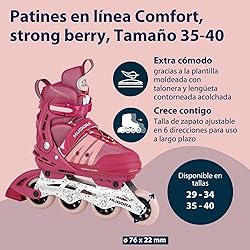 ¡A toda velocidad con los HUDORA Inline Skates Comfort - ¡máximo confort y diversión inolvidable! Excelentes características: Nuestros patines en línea están equipados con rodamientos de bolas ABEC 7 de carbono que garantizan un paseo suave y divertido. El sistema de cordones rápido, la hebilla de cierre rápido y la correa de sujeción permiten ponerse y quitarse fácilmente, ¡así que la diversión comienza rápidamente! Ajuste de tamaño ajustable para disfrute a largo plazo: Los patines en línea HUDORA crecen contigo. Gracias al práctico ajuste de microtallas, puedes ajustar los patines hasta en 6 tallas. Pero no solo se puede ajustar la longitud, también se puede ajustar la anchura individualmente en el mediopié y en el área del talón. Ideal para los pies en crecimiento de los niños y para una diversión duradera. Disponible en tallas 29-34 y 35-40. Aspectos destacados del producto: La carcasa de nylon resistente a los golpes y el tope de goma resistente al desgaste, así como el chasis de aluminio resistente a los golpes y las ruedas de PU moldeado de alto rebote de 82A hacen que los patines en línea HUDORA sean tu compañero fiel en cada aventura. Máximo confort y protección: Nuestros patines en línea para principiantes y patinadores experimentados te ofrecen todo lo que necesitas para paseos emocionantes y divertidos. La bota suave con plantilla moldeada y almohadillas para el talón garantiza el máximo confort, mientras que el sistema de ventilación Air-Vent y el COOLMAX® en el cuello aseguran una ventilación óptima. Modelo perfecto para niños y adolescentes: Nuestros patines en línea están perfectamente adaptados a las necesidades de los jóvenes patinadores. El tamaño 29-34 es adecuado para un peso de usuario de hasta 60 kg y el tamaño 35-40 es adecuado para hasta 100 kg. HUDORA, una empresa familiar en la cuarta generación, representa calidad, sentido de la tendencia y responsabilidad social. Con los patines en línea, obtienes un producto de alta calidad a un precio justo. Experimenta una diversión en el tiempo libre incomparable y descubre el mundo con nuestros patines en línea. ¡Haz tu pedido hoy mismo y experimenta la diferencia!