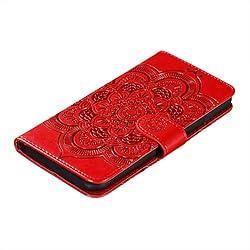 IMEIKONST Funda para LG Velvet 5G Embossed Libro de Cuero Billetera Premium Phone Case Flip Folio Card Slot Holder Magnetic Stand Funda para LG G9 Velvet Mandala Red LD