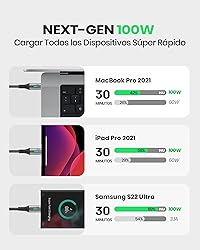 INIU Cable de carga USB C a USB C, [2 unidades de 1 m] QC 4.0 PD 5A 100W de carga rápida, cable trenzado tipo C para iPhone 17 16 Pro Max, Samsung S25 S24 Ultra, iPad Air, MacBook Pro, Switch 2, etc