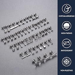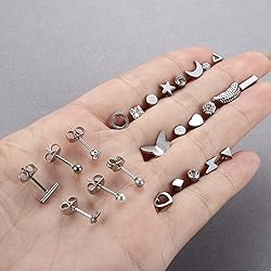 JeweBella 24 pares de aretes pequeños para mujer Juego de acero quirúrgico aretes de hélice de cartílago aretes de perlas planos hipoalergénicos aretes de circón estrella para mujeres y hombres JUEGO DE PENDIENTES PEQUEÑOS PARA MUJERES Un pedido contiene 24 pares de aretes pequeños de acero inoxidable, que incluyen aretes de corazón, triángulo, perla y estrella , cartílago de mariposa, relámpago, hoja y circonita cúbica, etc. Los diferentes estilos de pendientes añaden más encanto y frescura a su uso diario. PENDIENTES HIPOALERGÉNICOS El juego de aretes para mujer está hecho de acero inoxidable 316L. CZ brillante y de alta calidad. Resistente, sin plomo ni níquel para tu piel sensible. El acabado de espejo completo mantiene estos pequeños aretes brillantes durante mucho tiempo, no se desvanecen fácilmente y le brinda una experiencia cómoda. TAMAÑO DE PENDIENTES PEQUEÑOS Diámetro del poste Oreja: 20G Longitud del poste: 6 mm Tamaño de la hebilla del pendiente: 5 mm Se adapta a la mayoría de mujeres y hombres. El diseño de la hebilla trasera del pendiente es muy estable y no se cae fácilmente. Cómodo de llevar y fácil de poner y quitar. Disponible en colores dorado y plateado para adaptarse a sus necesidades de uso. SET DE PENDIENTES PARA CARTÍLAGOEstos pequeños aretes de acero quirúrgico tienen un estilo simple y elegante y pueden adaptarse a todas las ocasiones, como fiestas, bodas, viajes y la vida diaria. Puedes usarlo como regalo especial para amigos o familiares en cumpleaños, San Valentín, Navidad, Día de la Madre, aniversarios, etc.