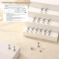 JeweBella 8 Pares Pequeños Pendientes Acero Quirúrgico Mujer Niña Hipoalergenicos Pendientes Zirconia Cúbica Opal Perlas Pendientes Cartilago Oreja Piercing Oreja Joyería Con Caja de Regalo