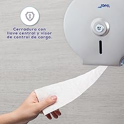 Jofel - Portarrollos de Papel Higiénico Industrial Mediano, Dispensador de Papel en Rollos hasta 300m, max. 220mm de Diámetro, Mandril de 18 a 55mm, Carcasa Acero Inoxidable Satinado, Clásico AE21300 -Dispensador industrial de papel rollo, tamaño mediano. -Fabricado en acero inox. satinado de alta calidad. -Cerradura con llave, visor frontal de carga y antivandálico. -Admite rollos de hasta 300 mts. y de diámetro máximo de 220 mm. -Para mandriles de 55 mm. de diámetro. -Integrado en la línea Clásica. -Frontal totalmente abatible para carga rollo papel. -Fácil limpieza y mantenimiento. -Robusto y resistente, asegurando larga duración. -Se integra fácilmente en cualquier instalación y decoración. -Indicado para establecimientos de rotación media. -Recomendado para colectividades y W.C. públicos. -Ampliamente experimentado y testado. [ ¿Quiénes somos? ]: Jofel es una empresa multinacional dedicada a la producción, comercialización y distribución de Sistemas y Equipos de Higiene y Limpieza Profesional, con más de 30 años de presencia en los mercados internacionales y con implantación en más de 80 países de los cinco continentes.