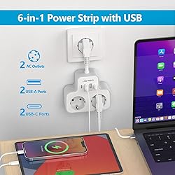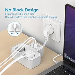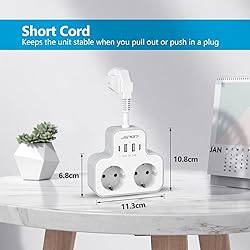 JSVER Regletas Enchufes USB C,Ladron Enchufes con 2 Tomas y 4 Puertos de USB(2 USB A y 2 USB C) Enchufe Alargador Multiple Pared Cable Corto-Blanco