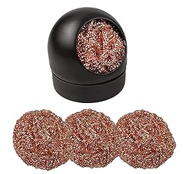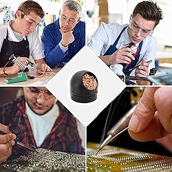 Juego de limpiador de puntas de soldadura, limpiador de puntas de soldadura, esponja de metal con soporte de base negro, limpieza de soldador, limpiador de soldadura, esponja en seco con 3 alambre de limpieza de soldador Especificaciones: Material: latón. Color: negro (soporte de base), color cobre (limpieza de soldador) Tamaño: 6,8 x 6,7 cm (2,68 pulgadas) (soporte de base), 5,5 cm (2,2 pulgadas) (limpieza de soldador) Método de funcionamiento: 1. Simplemente inserta la punta del soldador en la almohadilla de bola de alambre de cobre limpia y gírala suavemente varias veces para eliminar el exceso de escoria de soldadura. 2. Después de un uso prolongado, puedes soldar la esponja de metal con agua limpia para que se pueda utilizar muchas veces. 3. Si después de un uso repetido se han acumulado demasiados restos de soldadura, puede desenroscar la base, separarla de la cáscara de bola, reemplazar el limpiador de puntas de soldador por el suministrado y quitar fácilmente los restos de estaño en el soporte. Consejos: 1. Dado que el limpiador de soldadura es elástico, los residuos no deben salpicar en sus manos durante el uso. 2. Cuando reemplace la limpieza de soldadura, por favor, use guantes, coloque el soporte de base en posición vertical, ábralo y vuelva a colocarlo después de enfriar para evitar lesiones. El paquete incluye: 1 juego de limpiador de puntas de soldadura. 3 esponjas limpiadoras de puntas de soldadura