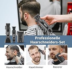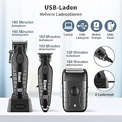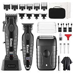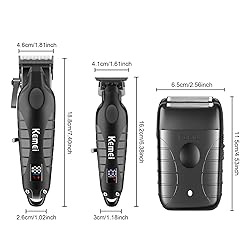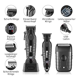 Este juego de cortapelos KEMEI para hombre cuenta con cuchillas de acero al carbono DLC de alta precisión y un potente motor de alto rendimiento que te permite múltiples opciones de estilo como degradados, mezclas, cabezal de aceite y modelado artístico. También es ideal para cortar el cabello, recortar la barba y recortar el vello corporal. Equipado con carga rápida USB, pantalla LED inteligente y diseño silencioso.