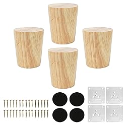 KINDPMA 4 Piezas 6cm Patas para Muebles Madera Roble Cónicas Patas de Mesa de Madera Patas para Sofas con Tornillos y Placa de Montaje para Cama,Sillón,Gabinete de TV, Armario