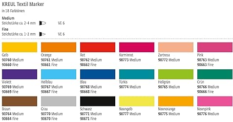 Cuando las personas creativas y los jóvenes diseñadores de moda diseñan su propia moda, el marcador textil fino KREUL es imprescindible. Gracias a su punta robusta, se puede empezar enseguida: sin sacudidas ni bombeos. Se pueden dibujar frases y nombres, garabatos y figuras sobre tejidos claros, escribir con mucha delicadeza o pintar sobre grandes superficies. El rotulador es de base acuosa, resistente a la luz y tiene una anchura de trazo de 1 a 2 mm aproximadamente. Es ideal para diseñar tejidos claros de algodón, batista, lino y tejidos mixtos con un contenido máximo de fibra sintética del 20%. Cómo funciona: Antes de pintar, lave los tejidos sin acabado ni suavizante. Coloque papel de horno entre las capas de tejido para protegerlas. Deje que el color se fije al aire durante al menos 3 días. Para acelerar la resistencia al lavado, cubra el tejido con papel de horno tras un tiempo de secado de 6 horas y fíjelo con una plancha en la posición de algodón durante 5 minutos o en el horno a 150 °C durante 8 minutos. Los tejidos pintados pueden lavarse del revés hasta 60 °C.