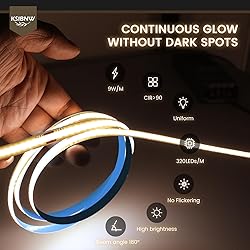 KSIBNW Tira de LED COB 12V, 5M Tira Luz LED Blanco Frío 6000K Luces LED Habitacion Anchura 8mm Luz de Cuerda Cortable Flexible CRI>90 para Fondos de TV, Cocina, Fiesta, Sin Fuente de Alimentación