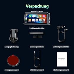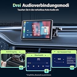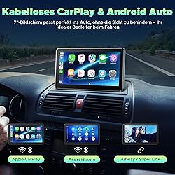 LAMTTO Carplay Inalámbrico Android Car Display 7 Pulgadas Radio Portátil del Coche con Pantalla Táctil Pantalla del Coche Android con Bluetooth Enlace Espejo Navegación Asistente Siri y G00gle