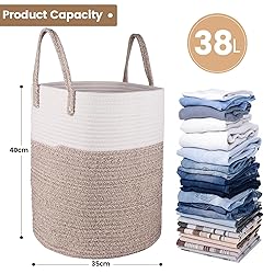 Especificación Material del tejido: Cuerda de algodón Capacidad: 38L Grosor: 7 mm Tamaño: 40cm (diámetro) x 35cm (altura) Lista de embalaje: 1 x cesta ropa sucia ¡1.La cesta es suave y resistente, no producirá golpes ni arañazos, y puede contener una gran cantidad de artículos, tales como mantas, almohadas, ropa, juguetes, artículos de lavandería, ropa de cama, libros y así sucesivamente! Su elegante diseño y belleza la convierten en una decoración perfecta para cualquier habitación. 2.La cestas almacenaje es fácil de limpiar y el asa es práctica para transportar todos los artículos pesados. Ideal para el uso diario y duradero.