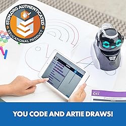 Aprende a codificar línea a línea con Artie Max, el robot que une la codificación con la creatividad. Perfecto tanto para primerizos de la codificación como para aquellos que ya dominen el manejo de los robots, Artie Max enseña la parte artística de la codificación con cinco lenguajes integrados (Blockly, Snap!, JavaScript, Python, y C++) para que los niños den un paso más en su aprendizaje de STEM mientras crean obras de arte dignas de ser enmarcadas. A través de una conexión wifi integrada y segura, Artie se comunica directamente con el dispositivo al que lo conectes, sin necesidad de conectarse a Internet. Empieza con las sencillas instrucciones de Artie y aprende a codificar para crear coloridos diseños en minutos. Artie Max, el robot habilitado con wifi que dibuja, con un montón de características y aplicaciones integradas, 3 rotuladores intercambiables, batería recargable con cable micro-USB, lámina de adhesivos y guía. Artie Max incluye diseños precodificados y 5 lenguajes de codificación integrados: Blockly, Snap!, JavaScript, Python y C++.