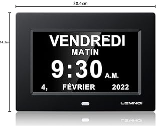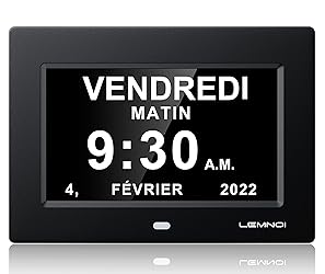 LEMNOI 7" Reloj Digital,Reloj Ancianos Alzheimer con Fecha y Hora,Atenuación Automática,8 Idiomas para Personas Mayores,Alzheimer
