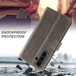 LENSUN Funda Samsung Galaxy A56 5G, Carcasa Cuero Genuino [Bloqueo RFID] con Tapa Cierre Magnetico y Ranuras para Tarjetas Cartera Libro Protección - Marrón Grisáceo