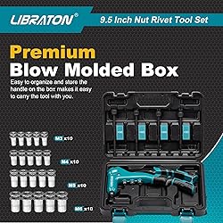 LIBRATON Remachadora de Tuercas, 9.5" Pistola de Tuercas, Herramienta de Tuerca de Remache con 40 Piezas Tuercas y 4 Mandriles Intercambiables M3, M4, M5, M6, Remachadora de Tuerca Profesional