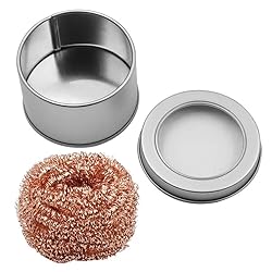 Especificaciones: Material del alambre de limpieza: latón. Material del recipiente limpiador: acero inoxidable. Contenido del paquete: 1 limpiador de puntas de soldador, soporte de esponja de alambre de latón en espiral suave.