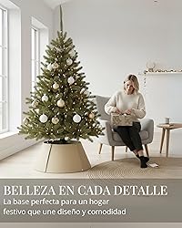 Oculta tu soporte de árbol de Navidad con estilo y establece una verdadera declaración decorativa con este revestimiento de piel sintética de alta calidad. El árbol Collar se compone de 5 elementos estables que se pueden conectar fácilmente mediante un sistema de clic, lo que crea en pocos segundos una cubierta decorativa para soportes de árbol que no solo es práctica, sino que también convence visualmente. Lo especial: puedes ajustar el tamaño del cuello del árbol de Navidad de forma flexible, dependiendo de qué tan grande sea tu soporte de árbol de Navidad o el aspecto que quieras lograr. Ideal para soportes estándar de hasta 60 cm de diámetro. Con una altura de 24 cm, la cubierta del árbol de Navidad es lo suficientemente alta como para ocultar completamente las antiestéticas técnicas y soportes. Al mismo tiempo, el anillo de árbol de Navidad protege de mascotas como gatos, a quienes les gusta crear debajo del árbol. El diseño de doble cara en elegante beige y marrón cálido con elegante estampado dorado hace que la cubierta del soporte del árbol de Navidad sea un verdadero punto de atracción, ya sea en un estilo clásico moderno o escandinavo. Tú decides qué lado mira hacia el exterior y puedes combinar el diseño perfectamente con tu hogar. Ya sea como falda de árbol de Navidad, collar de árbol de Navidad, collar de árbol, cesta de falda de árbol de Navidad, cesta de árbol de Navidad, falda para árbol de Navidad o simplemente como elegante decoración de árbol de Navidad dorado: este accesorio crea inmediatamente una imagen general ordenada de alta calidad y trae tranquilidad bajo el árbol. En comparación con un árbol de Navidad en la cesta, esta solución ahorra espacio, es más flexible y fácil de almacenar. Utiliza el collar de árbol como una actualización decorativa funcional y convierte tu superficie de árbol en un elegante escenario para regalos, luces y alegría navideña. Cubierta para soporte de árbol de Navidad Flexible adaptable (5 piezas) Diseño reversible: marrón y beige Piel sintética de alta calidad con estampado dorado Ø 60 cm | Altura 24 cm