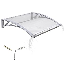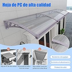Marquesina para Puerta Exterior 120x80 CM,Tejadillo de Protección con Fregadero de Drenaje contra Lluvia y Rayos UV,Cubierta de Policarbonato para Puertas,Ventanas,Porches,Patios y Terrazas