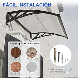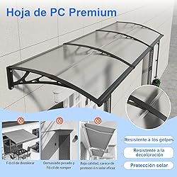 Marquesina para Puerta Exterior 150x100 CM, Tejadillo de Protección contra Lluvia y Rayos UV, Cubierta de Policarbonato para Puertas, Ventanas, Porches, Patios y Terrazas