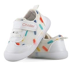 Información de tamaño: Talla EU--------------Longitud de la plantilla---------Talla de etiqueta (CN) 18 EU--------------------------12 cm------------------------------14 19 EU-------------------------12.5 cm-----------------------------15 20 EU-------------------------13 cm-------------------------------16 21 EU-------------------------13.5 cm----------------------------17 21.5 EU-----------------------14 cm------------------------------18 22 EU-------------------------14.5 cm----------------------------19 23 EU-------------------------15 cm-------------------------------20 Nota: Longitud de la plantilla = longitud del pie del bebe + 0.5 ~ 1 cm de espacio Pruebe la longitud del pie de su bebe para elegir el tamaño correcto para su bebe Sobre nosotros: Todo bebé es un ángel y es la persona más linda a los ojos de todos. Prestamos atención a la calidad del producto y a todos los aspectos del desarrollo del bebé. Nuestra filosofía es proporcionar productos seguros y de alta calidad para bebés, y el objetivo final del diseño del producto es seguro, cómodo, suave y liviano. Estamos seguros de que este calzado será el mejor regalo para su bebé.
