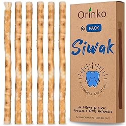 Miswak Natural - Palo de Dientes para Blanqueamiento Dental y Higiene Oral - Cepillo Ecológico con Raíz de Siwak - Pack de 6 Limpiadores Dentales Naturales - ORINKO