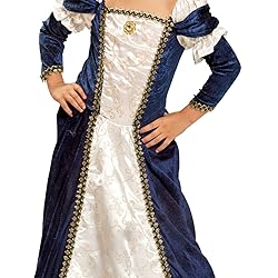 My Other Me - Disfraz Dama Medieval Niña. Incluye vestido largo azul con franja central blanca y bordados dorados, mangas largas en capas y diadema a juego con flor.