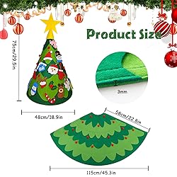 Árbol de Navidad de fieltro 3D, adornos para árbol de Navidad, 55 cm, tela de fieltro, decoración de pared, crea una Navidad inolvidable para ti y tus hijos. Características: -Fácil de usar: simplemente pegue los adornos en el cierre de velcro - Bonito regalo de Navidad para niños, niños pequeños y tus amigos - Los colores vivos y los adornos múltiples son perfectos para fiestas navideñas, habitaciones de niños, aulas, paredes, ventanas y decoraciones al aire libre, crea un ambiente festivo increíble Especificaciones: Materiales: fieltro de alta calidad Tamaño: ancho x alto: 3 mm de grosor y el grosor del adorno es de 2 mm. Cantidad: 1 pieza de árbol de Navidad y adornos para árbol de Navidad. Nota: Somos embalaje plegable, usted podría con un hierro hacer el árbol perfecto para colgarlo en la pared o puerta, y se puede utilizar una y otra vez El velco puede apagarse si lo usa repetidamente, puedes usar el hierro o el encendedor para calentar el pegamento para volver a usarlo. DIY su propio árbol de Navidad de fieltro en estas próximas vacaciones de Navidad con sus hijos!