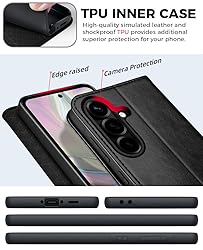 Funda tipo cartera para Samsung A56. Funda OCASE de alta calidad. * Si quieres la mejor funda para tu Galaxy A56, OCASE será un muy buen activo para ti. * La calidad y el diseño de la funda OCASE son los favoritos de muchos de nuestros clientes en todo el mundo. Nuestro objetivo es seguir mejorando y proporcionar productos de valor y calidad a nuestros clientes con el tiempo. Función manos libres. * La función independiente y manos libres. * Le permite colocar su smartphone en una posición perfecta para ver o leer. Compatible con carga inalámbrica. * No es necesario quitar esta funda tipo cartera cuando utilices el cargador inalámbrico. Almacenamiento de tarjetas. * No hay necesidad de llevar una cartera engorrosa, ya que hay 3 ranuras para tarjetas, además de un bolsillo lateral para tu dinero o tarjetas adicionales en esta elegante funda. Diseño que absorbe los golpes. * Esquina elevada: 2 mm, para una mejor protuberancia de la pantalla y protege de cualquier caída y golpes.