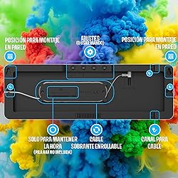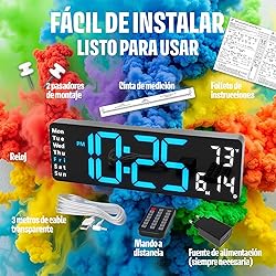 El Opis Clock 1 XL de Opis Technology, Alemania, es un reloj digital pared grande xxl que combina funcionalidad y diseño elegante. Con su tamaño XXL de 13'' o 16'', ofrece una visualización clara y atractiva, ideal para cocina, oficina o gimnasio. Estereloj digital grande incluye características avanzadas como ajuste automático de brillo, visualización de hora en formato 24 horas o AM/PM, y un indicador de temperatura en °C o °F. Además, cuenta con 2 alarmas, temporizador de cuenta atrás, cronómetro y más. El reloj viene con todo lo necesario para comenzar, incluyendo mando a distancia, pasadores de montaje, cinta métrica, manual impreso y fuente de alimentación. Disfrute de la precisión y el estilo con el Opis Clock 1 (reloj digital de pared grande), respaldado por 24 meses de garantía del fabricante y servicio al cliente alemán de primera clase.
