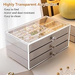 Organizador de joyas de acrílico con 3 cajones, organizador de joyas extraíble, caja de joyería de terciopelo para pendientes, anillos, pulseras, collares
