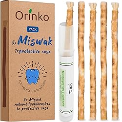 ORINKO Lote de 5 palos de Miwak + Estuche protector - Cepillo de dientes 100% natural - Limpiador, desinfectante y blanqueador - Ecológico, biodegradable y vegano - E-book incluido