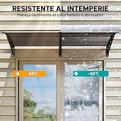 Outsunny Marquesina Exterior para Puertas y Ventanas 196x75 cm Tejadillo de Protección contra Sol y Lluvia con Cubierta de Policarbonato Soporte de Aluminio Negro