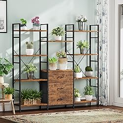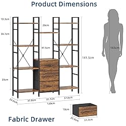 Mejora tu espacio con esta moderna estantería industrial, diseñada para satisfacer todas tus necesidades de almacenamiento y estilo. Mide 100 cm, 120 cm, 150 cm de ancho y 142 cm de alto, esta estantería alta ofrece un amplio espacio para organización y exhibición. Con su diseño versátil, cuenta con 10 estantes abiertos y 3 cajones grandes de tela, por lo que es la estantería perfecta con cajones para cualquier sala de estar, dormitorio, oficina o cocina. Ya sea para mostrar decoración u organizar lo esencial, esta estantería ofrece funcionalidad con estilo. Hecha de MDF duradero con un acabado rústico marrón y apoyada por un resistente marco de metal negro, esta amplia estantería combina sin esfuerzo la estética moderna e industrial. Su diseño abierto elimina el volumen de los armarios tradicionales, por lo que es perfecto para aquellos que buscan una solución independiente de estanterías que se sienta aireada y contemporánea. El soporte trasero en forma de X mejora la estabilidad, mientras que los pies niveladores ajustables mantienen la estantería estable en suelos irregulares. Cada estante puede soportar hasta 25 kg, lo que hace que esta estantería de 4 niveles sea ideal para libros pesados, artículos decorativos y contenedores de almacenamiento. Los estantes de almacenamiento también pueden acomodar plantas, marcos de fotos o coleccionables, ofreciendo infinitas posibilidades para tu espacio. Ya sea como una pieza destacada en tu unidad de almacenamiento de sala de estar o como una práctica estantería de dormitorio, esta unidad de almacenamiento alta combina estilo y resistencia para elevar la organización de tu hogar. Esta es realmente una estantería de cubos que se adapta a diversas necesidades mientras mejora tu decoración.