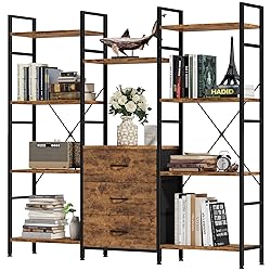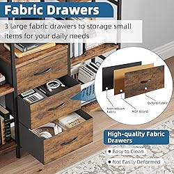 OYRREU Estantería con 3 cajones de Tela, estantería de 4 Niveles, estantería Ancha y Grande para Sala de Estar, jardín, Dormitorio, hogar, estantes Abiertos (Madera Rústica, 4 Niveles, 120 cm)