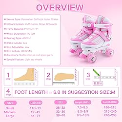 Patines para Niñas, Niños y Adolescentes, Patines Ajustables en 4 Tamaños con Ruedas Luminosas para Principiantes, Patines Deportivos Quad Blanco y Negro, Pequeño