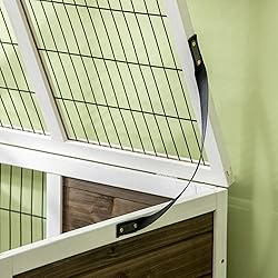 PawHut Conejera de Madera Elevada Jaula para Conejos con Área Abierta Techo Desmontable Puertas con Bandeja Extraíble Pestillo y Rampa Conejera para Interior 90x53x87 cm Blanco y Marrón