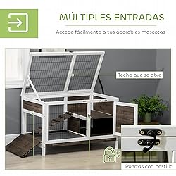 ¿Necesitas un hogar seguro para tus pequeñas mascotas? La conejera de PawHut es ideal, combinando un área cerrada para privacidad y un corral aireado con malla de acero. Su diseño incluye un techo abatible y una bandeja extraíble para facilitar la limpieza, además de patas desmontables que la adaptan perfectamente tanto para uso interior como exterior. Características: ● Esta conejera para interior está fabricada con madera de abeto resistente ● Vallas de alambre de acero para buena ventilación ● Esta conejera de madera incluye bandeja extraíble que facilita la limpieza ● Cuenta con rampa tipo escalera para fácil acceso de las mascotas ● Tiene dos puertas con cerrojo y techo abatible ● Adecuada para 1-2 mascotas ● Esta jaula para conejos requiere montaje ● Nota Importante: No realizamos envíos a las Islas Canarias, Ceuta y Melilla, ni a las Azores y otras islas de Portugal Especificaciones: ● Color: marrón y blanco ● Material: madera de abeto y acero ● Medidas totales: 90x53x87 cm (LxANxAL) ● Medidas de la parte cerrada: 33x48,5x19 cm (LxANxAL) ● Puerta: 29,5x36 cm (LxAL) ● Corral: 51,5x49x39,6 cm (LxANxAL) ● Puerta del corral: 46,5x25 cm (LxAL) ● Escalera: 47x15 cm (LxAN) ● Bandeja: 85,5x50,8x3 cm (LxANxAL) ● Referencia: D51-355V00CF - 1 x Conejera - 1 x Manual de instrucciones