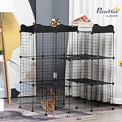 PawHut Jaula para Animales Pequeños de 40 Paneles, Parque para Mascotas, Valla Metálica, Forma DIY, para Conejos, Cobayas, Gatito, 105x70x116 cm, Negro
