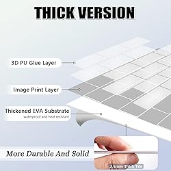 Características: Efecto 3D: las calcomanías autoadhesivas de pared para azulejos de cocina cuentan con un diseño 3D único que los hace lucir más tridimensionales, al igual que los azulejos de pared reales, con colores vibrantes que no se desvanecen ni se vuelven amarillos fácilmente y se pueden utilizar en una amplia variedad de escenarios. Resistente al agua: los azulejos están hechos de PET de alta calidad con superficie lisa e impresión clara, que tiene un buen rendimiento de impermeabilidad, resistente al aceite, al polvo y fácil de limpiar, por lo que es muy adecuado para su uso en la cocina, baño, ducha y otros lugares. Parte trasera adhesiva seleccionada: el papel pintado impermeable está hecho de adhesivo de poliuretano seleccionado respetuoso con el medio ambiente, que es fuerte en adherencia pero no deja rastros cuando se retira, por lo que se puede pegar fácilmente a la pared y no deja rastros que son difíciles de limpiar y no dañan los azulejos originales. Fácil de instalar: los azulejos de pared para despegar y pegar vienen con su propia parte trasera adhesiva, por lo que se puede instalar en pocos pasos: Paso 1, limpia la pared y sécala. Paso 2: utiliza una regla para dibujar una línea de referencia horizontal para la posición de pegado. Paso 3: retira una parte de la película adhesiva y pégala a la pared contra la línea de referencia, y luego retira lentamente la película adhesiva restante con una mano, al mismo tiempo, presiona la superficie firmemente con la otra mano para que quede plana y firmemente fijada. Por último, simplemente alinea y pega las salpicaduras restantes a la pared. Especificaciones: Nombre: adhesivo autoadhesivo para pared de azulejos de cocina. Material: PET, parte trasera adhesiva de poliuretano. Color: gris. Tamaño: 30,5 x 30,5 x 0,25 cm. El paquete incluye: 10 pegatinas autoadhesivas para azulejos de cocina.