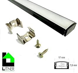Perfil negro de aluminio para LED tira con difusor opaco PACK con soporte de montaje U,barra disipador en tiras de 2 mts, canal con soporte de montaje,tapas finales (10, 5 x 2 metros)
