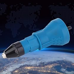 Especificación: Tipo de artículo: Adaptador de pistola de remache Material: metal y plástico. Color: azul, negro (opcional) Potencia: para usar con un taladro eléctrico Velocidad máxima: 1000 RPM Lista de paquetes: 1 taladro de remache. 1 x asa auxiliar 1 x llave 4 cabezas de remache. (uno en el taladro y tres en el mango)