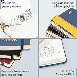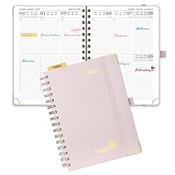 POPRUN Agenda 2026 Semana Vista Espiral Medio 21,5 x 16 cm, Tapa Dura en Planificador 12 Meses de Ene 2026 a Dic 2026, Regla de Plástico, 100 GSM Papel, Rosa Claro