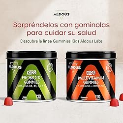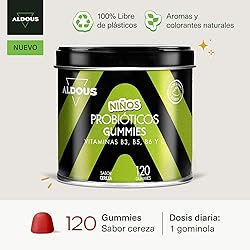 Probióticos Niños - 120 Gummies sabor natural Cereza - Flora intestinal, Gases e Hinchazón - Bifidobacterium, Lactobacillus, Vitamina C, B3, B5, B6 - ALDOUS